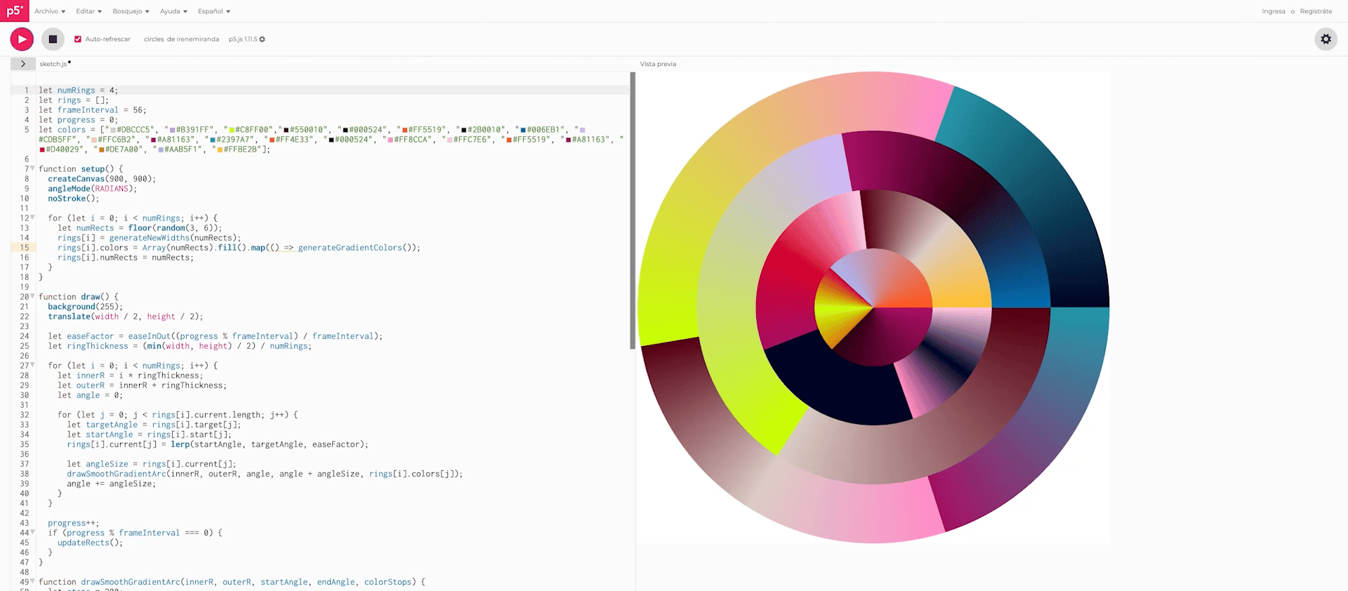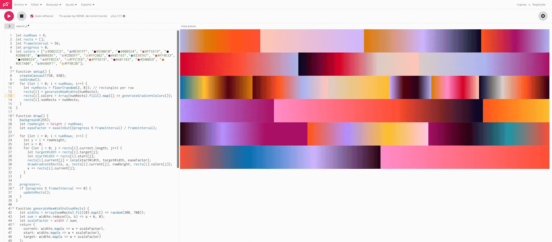 To participate I decided to create a piece made in creative coding that generated random gradients at the same BPM as the music that was going to play during the collaborative mapping. Later I adapted the generative pice into the segments of the particular shape of the building.